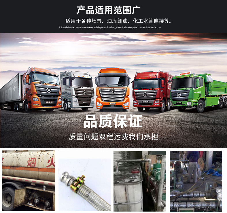 接頭安裝方式:扳把式(凸輪鎖緊)、管箍固定、與管道螺紋連接。