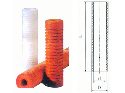 線纏繞式濾芯是由紡織纖維紗精密纏繞在多孔骨架上,控制濾層纏繞密度及濾孔形狀而制成不同過(guò)濾精度的濾芯。